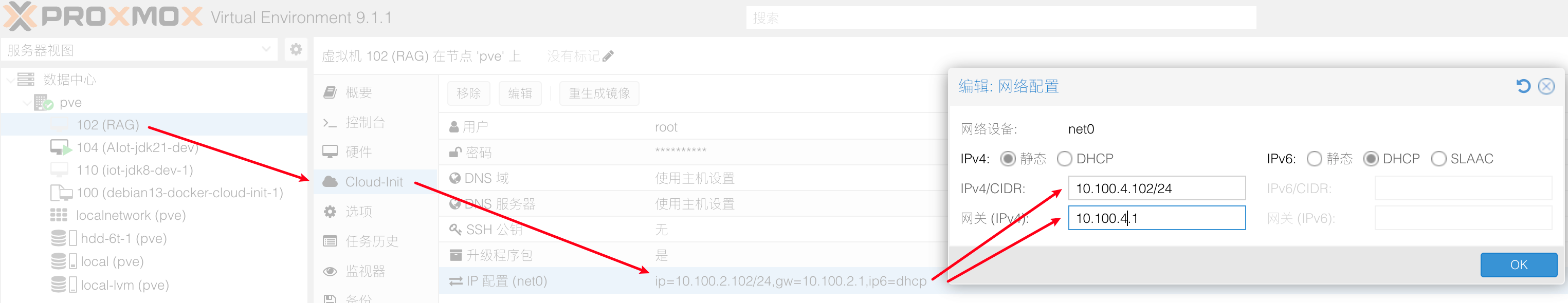 在webui恢复可能会提示vm-102-cloudinit已经存在: